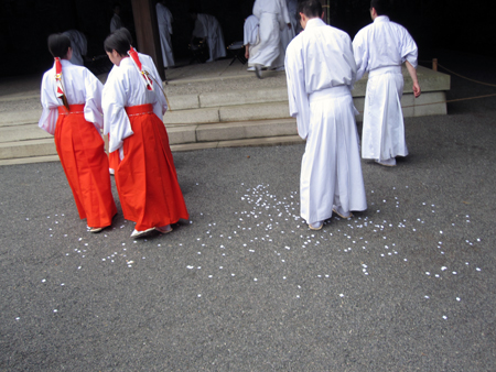 - 足もとの白い紙はお祓いの切麻。